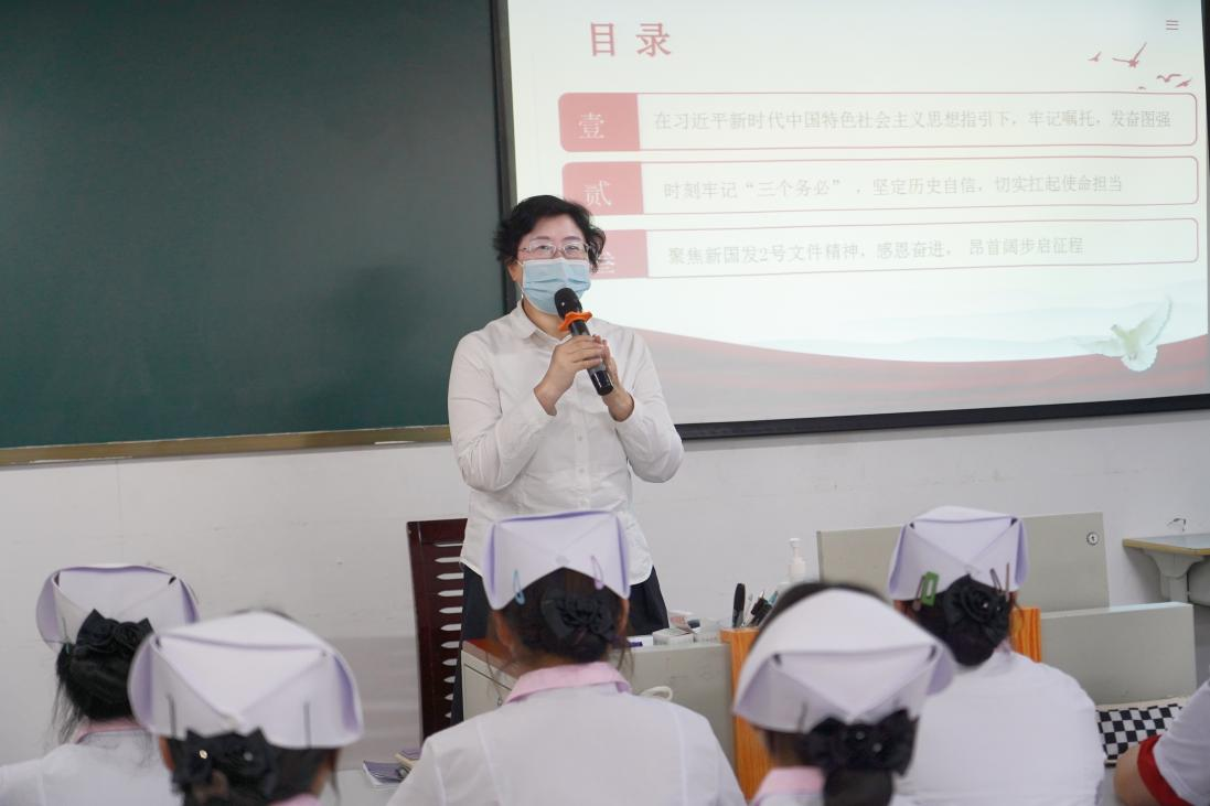 黄亚励带领同学们深入学习领会习近平新时代中国特色社会主义思想的科学体系和深刻内涵、“三个务必”要求、新国发2号文件精神等方面内容,并激励同学们在习近平新时代中国特色社会主义思想指引下,牢记嘱托,感恩奋进,牢固树立共产主义的远大理想;时刻牢记“三个务必” ,深刻理解新时代卫生健康职业院校学生的职业使命,坚定历史自信,切实扛起担当;聚焦新国发2号文件精神,积极进取,在推进中国式现代化的贵州实践和实现中华民族伟大复兴的新征程上,勇挑重担,努力成长为德智体美劳全面发展的社会主义建设者和接班人。